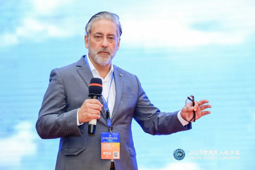 ▲会议现场出席大会的领导和嘉宾有:世界无人机联合会葡萄牙分会会长、葡萄牙无人机协会会长莱里奥·迪尼斯·费雷拉·莱特先生,世界无人机联合会印度分会会长伊宝新·加哥迪瓦先生,CSA大中华区主席、乌克兰国家工程院外籍院士李雨航先生,北京市延庆区投资促进服务中心主任赵梅女士,深圳市罗湖医院后勤保障部主任罗利清女士,丰翼科技CTO姜明涛先生等。