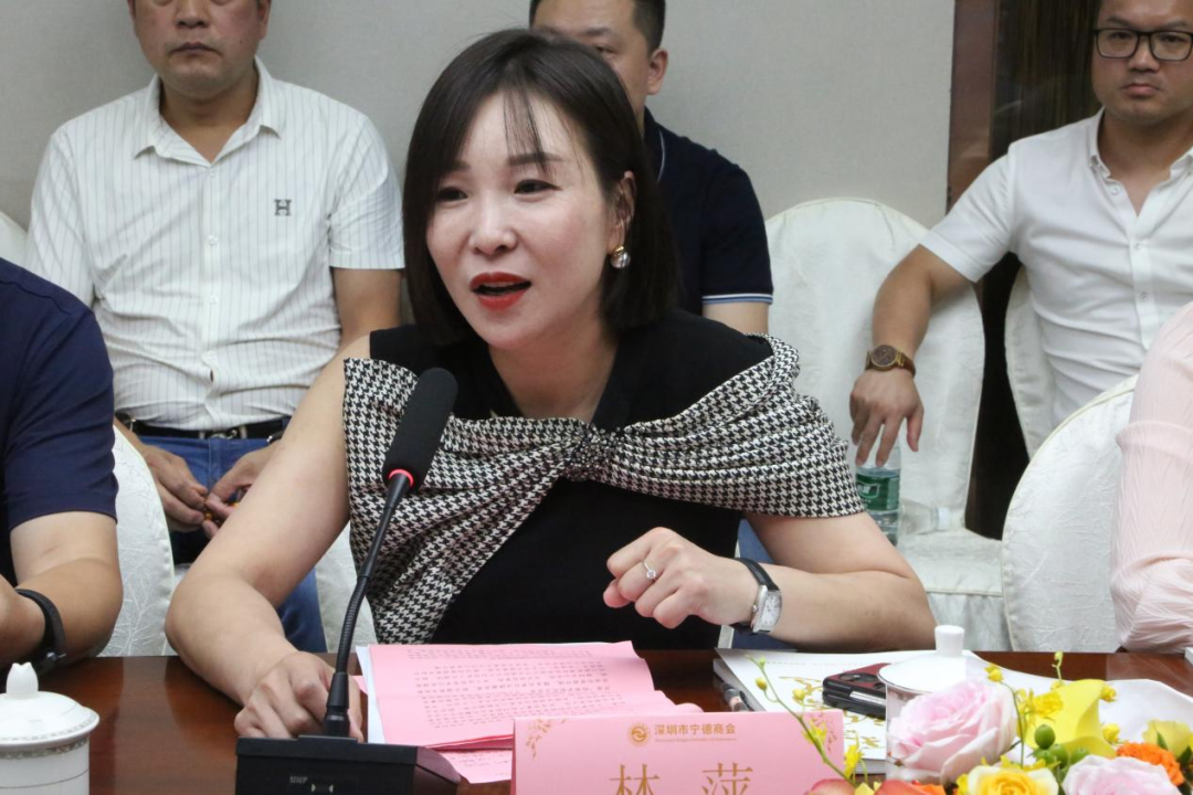 福鼎市工商联主席林萍作交流发言,就福鼎市工商联工作情况与龙岗区工商联作交流汇报。
