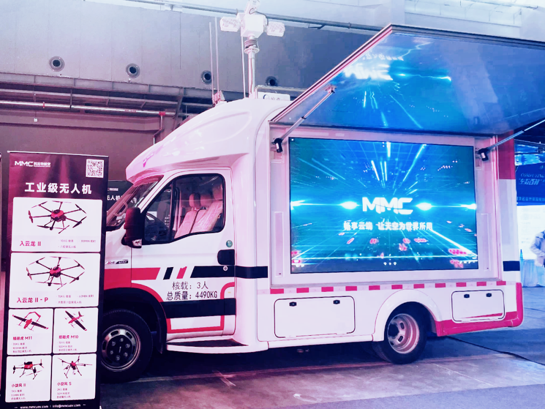 移动指挥车通过3.7平米LED高清户外展示大屏播放移动智慧城市宣传片等视频内容,吸引了不少客户前来品鉴。整车采用高度集成的设计,配置指挥中心、飞控系统、机库、5G移动网络,具备跨区域调度,应急指挥,通讯保障以及综合检测等功能,有效协助前线作战,应急调度。