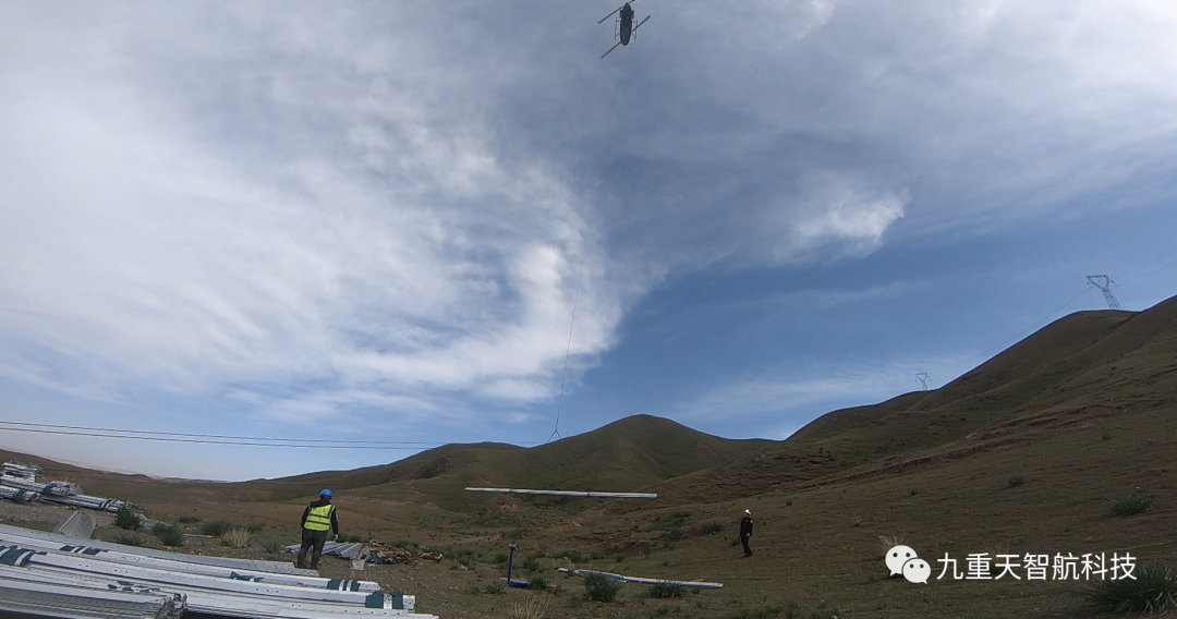2023年6月,广西九重天智航科技服务有限公司在高海拔地区(甘肃省天祝县)使用驼峰600大载重无人直升机顺利完成了电塔基建项目中的基础材料运输项目。本次吊装创新技术的成功运用,大大提高了工作效率,同时也缩短了运输周期,大幅减少了架设索道的工作量。这项创新技术应用了航空特种物流科技手段,使得整个运输过程不会破坏地表植被,保护了生态环境,全程顺利地完成了电塔基建的各环节任务。此次飞行成果得到了国家电网公司和当地环保部门广泛的认可和赞誉,是国内又一项领先的创新科技成果。