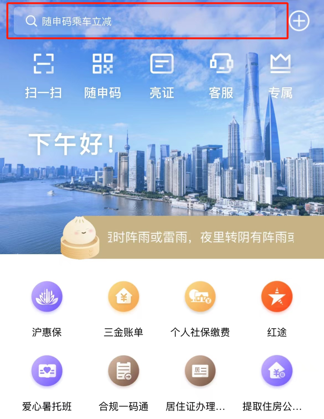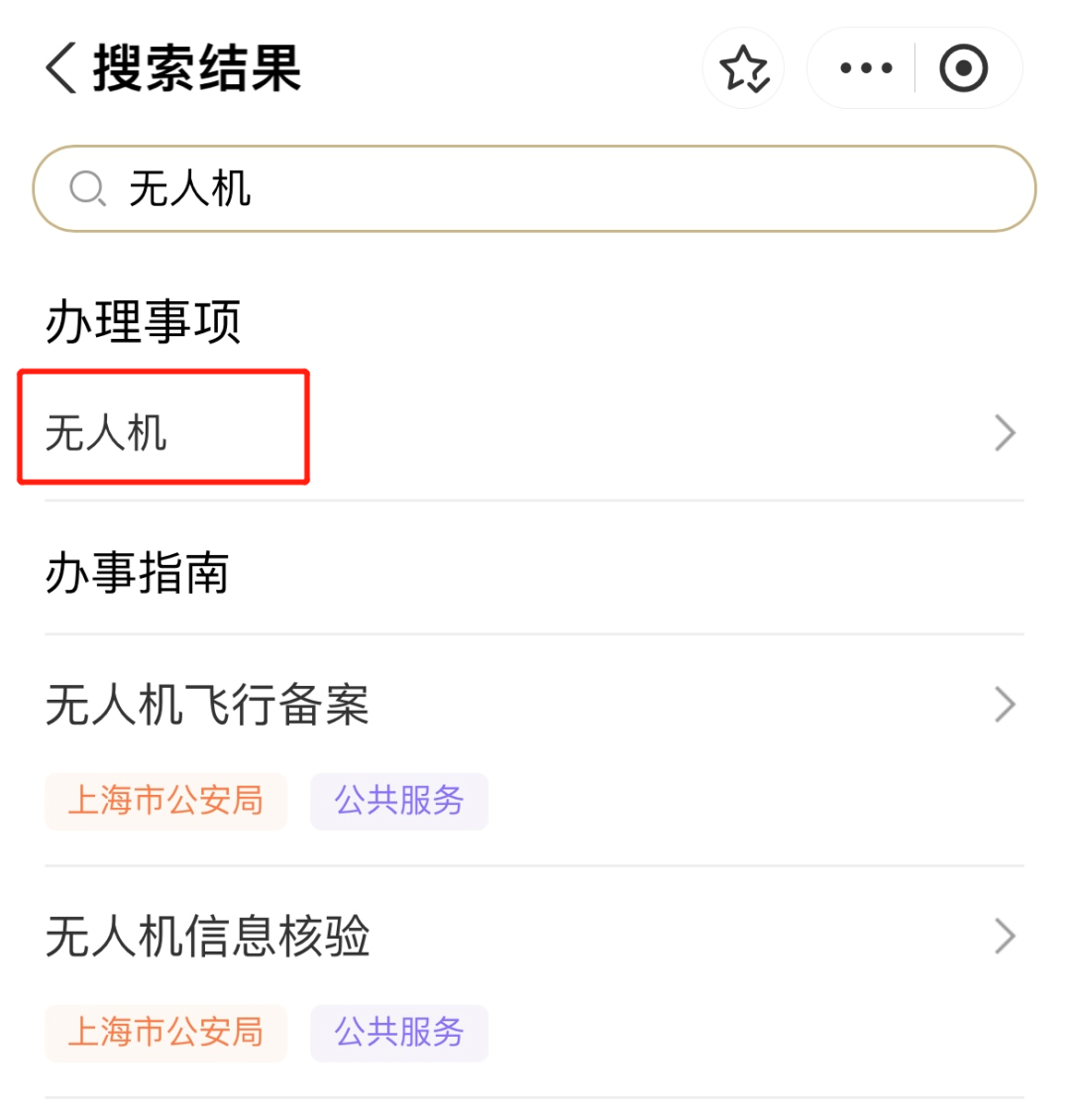 在“随申码”中点击搜索框,输入“无人机”进行搜索。