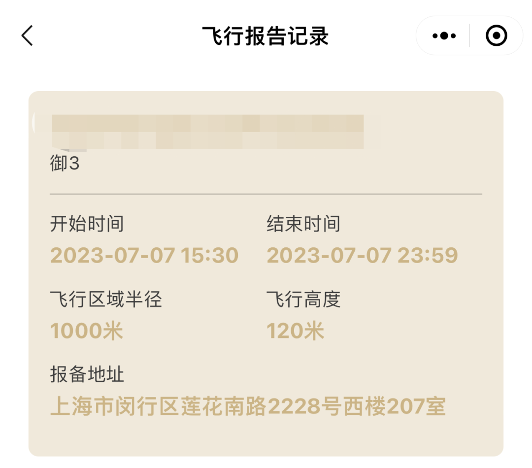 在飞行报告记录中可查看已报备的无人机飞行报告。