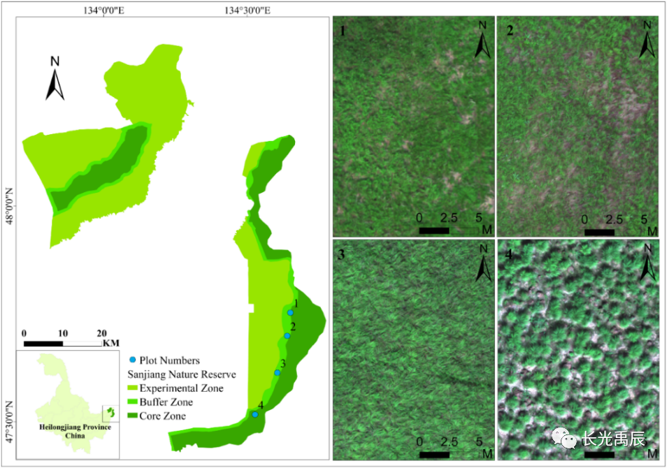 此研究采用搭载长光禹辰公司自主研发的MS600 Pro多光谱相机的多旋翼无人机,获取了三江国家级湿地自然保护区的多光谱影像,用于沼泽湿地植物物种多样性的监测。