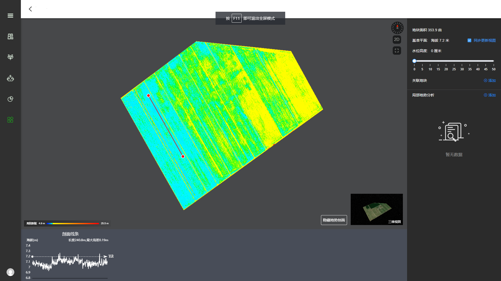系统后台的地势分析结果,从剖面线条可以看出作业效果