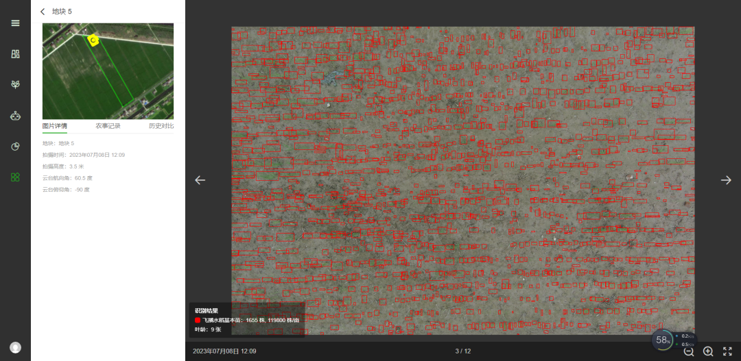 后期等稻种出苗后,极飞遥感无人飞机可以再次出动,不再需要管理员大热天下地巡查。搭配极飞智慧农业系统进行基本苗分析,就可以核查田间出苗情况和播种质量。