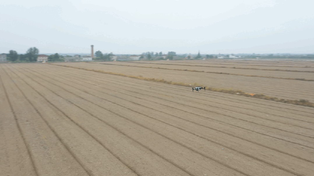 极飞遥感无人飞机正在对平整后的土地进行飞巡