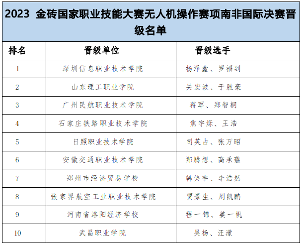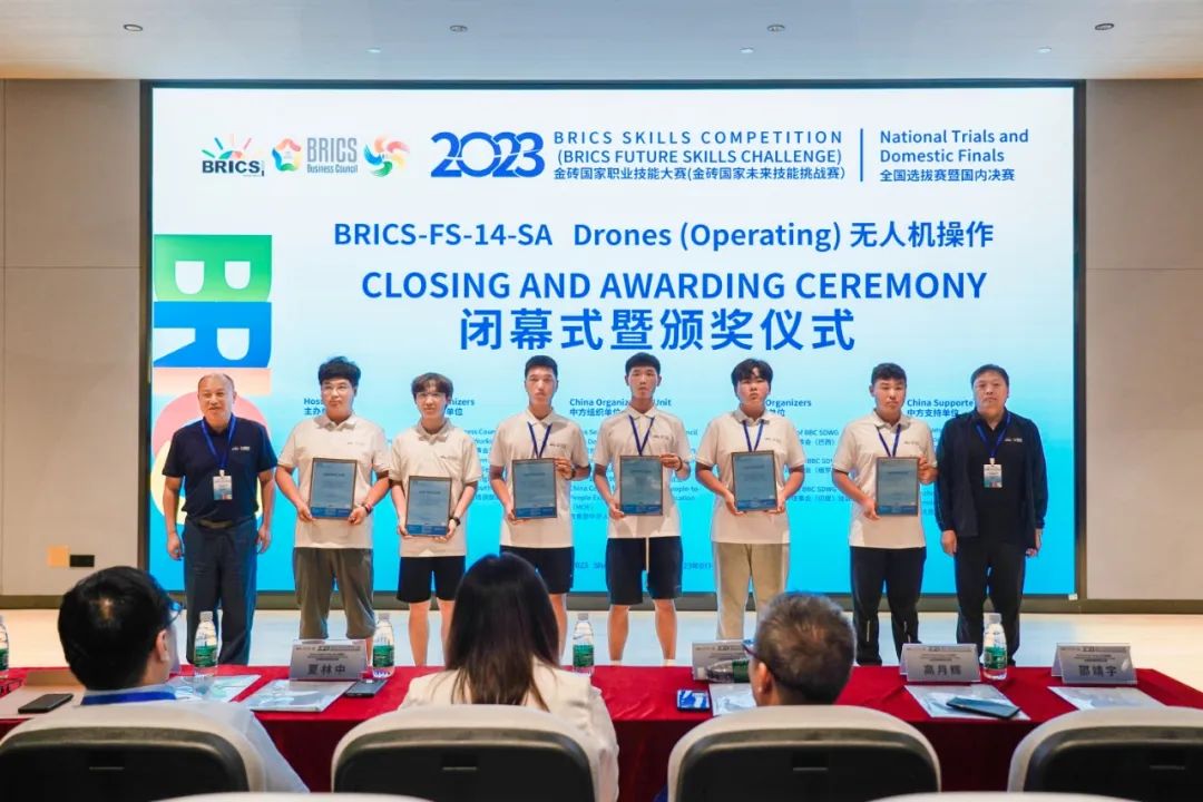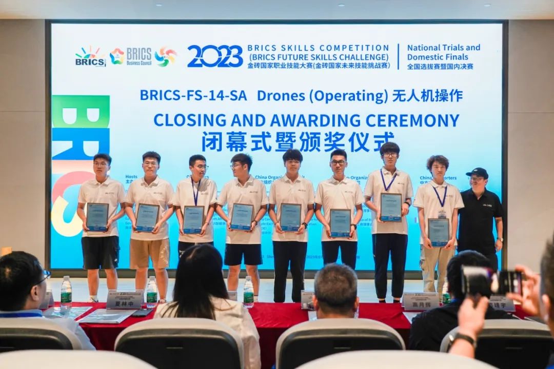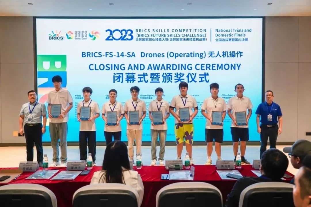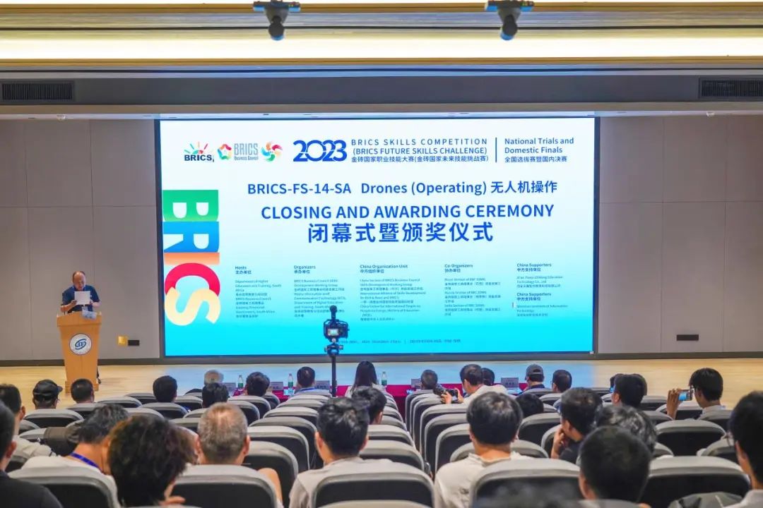 ‘2023金砖国家职业技能大赛无人机操作赛项全国选拔赛暨国内决赛’由南非高等教育与培训部、金砖国家工商理事会、南非豪登省政府主办,金砖国家工商理事会 (中方) 技能发展工作组、一带一路暨金砖国家技能发展国际联盟、教育部中外人文交流中心组织,本场比赛由深圳信息职业技术学院承办,西安天翼智控教育科技有限公司提供技术支持。