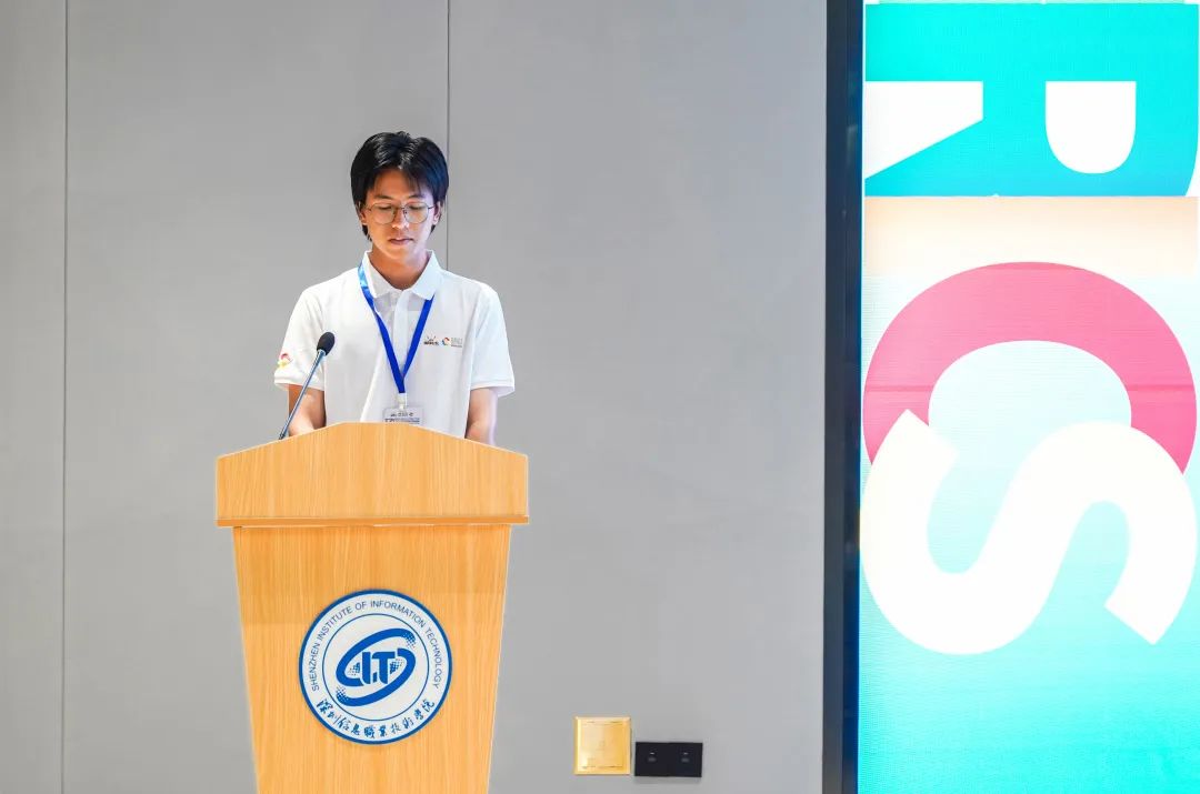 裁判代表和选手代表宣誓环节,来自深圳职业技术学院梁伯栋教授与深圳信息职业技术学院的杨泽鑫同学上台宣誓。
