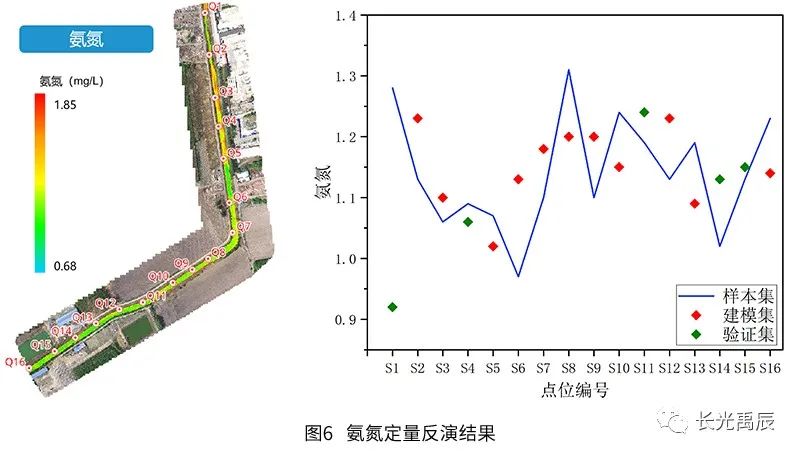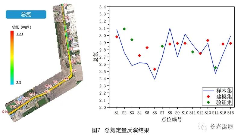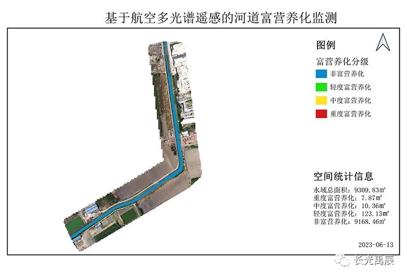 【1】富营养化分析水体富营养化是指水中营养物质(如氮、磷)过度积累,导致水体中藻类、水生植物大量繁殖的现象。水体富营养化会造成藻类过度生长,破坏水生态系统的平衡,甚至引发水体死亡。通过无人机多光谱遥感技术,结合实测水质参数数据的分析,对本次实验河道水体富营养化的识别情况如图4所示。
