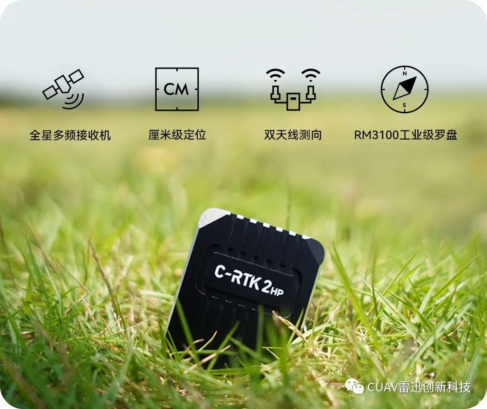 C-RTK 2HP内置工业级RM3100罗盘,可将模块安装至远离干扰的位置,可当作可靠的冗余备份源