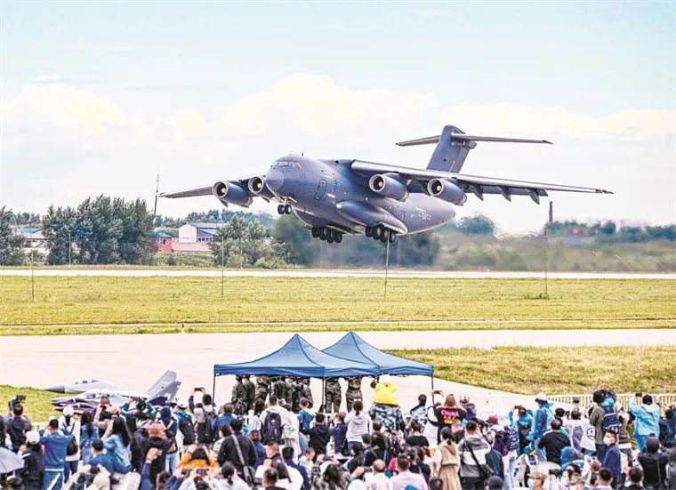 8月26日,2022年空军航空开放活动暨长春航空展在长春开幕。运-20运输机等亮相展出备受关注。歼-16、歼-20、运-20飞机翱翔天际、呼啸苍穹,展示了国产军机优异性能。
