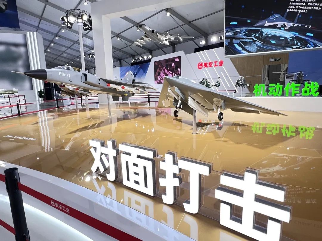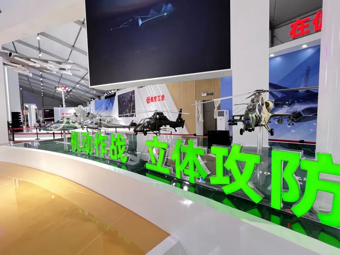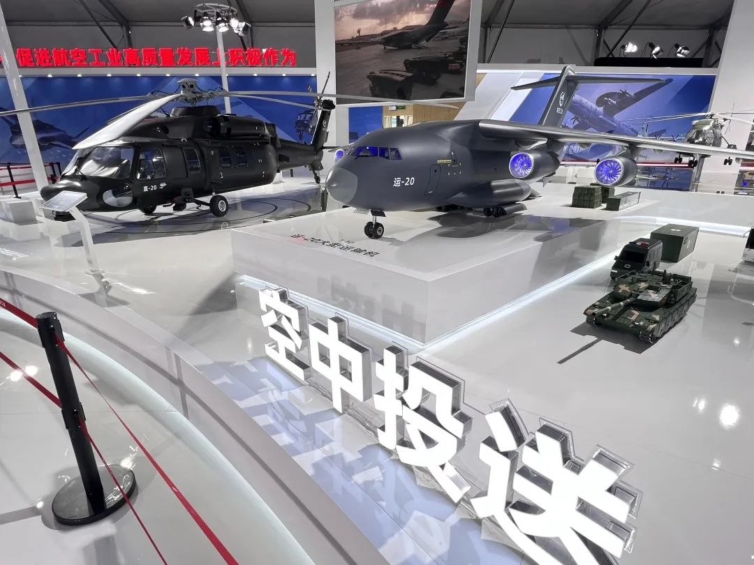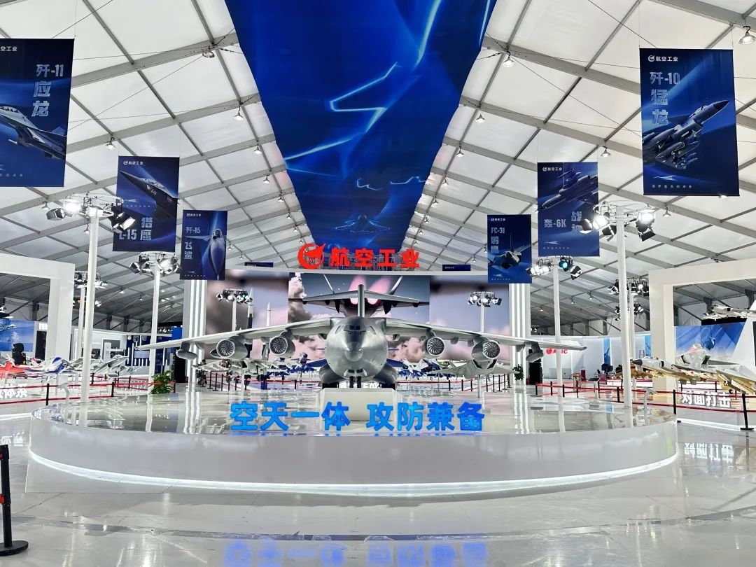 走进航空工业展馆,运油20、歼20、歼16以大比例模型矗立在展馆中心,为现场观众震撼再现人民空军“三剑客”同框瞬间。备受关注的“中国力量”展台设置了制空作战、对面打击、海上攻防、空中投送与支援保障、训效体系、机载武器等多个分展区。其中,制空作战展区集中展示了歼20、歼10CE、歼10S、歼11B、歼16等主战机型,展现航空工业全力支撑空军“空天一体、攻防兼备”; 对面打击展区以轰6K、歼轰7E、攻击11、歼10A为展示重点,综合展示对面打击、近距离支援能力,并通过直9WE、直10ME、直11E等军用直升机展现航空工业支撑陆军迈向“机动作战、立体攻防”;在空中投送与支援保障展区,运20、运9、直20、直8以及空警200、空警500、ZDK-03预警指挥机依次亮相;海上攻防展区围绕全力支撑海军迈向“近海防御、远海护卫”展示了歼15、空警500H、直18F、“翼龙”-2反潜侦察型无人机、“旋戈”-500CJ等机型;训效体系展区重点展示了初教6、K8、L15A、FTC-2000等具有代表性的全系列教练机;机载武器展区展示了以PL15E、PL10E、SD10A为代表的系列空空导弹、通用导弹、地空导弹等。