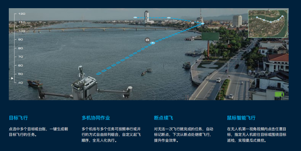 复亚智能全新升级的MindView云平台,对航线规划、任务管理、自动飞行、数据管理等各个环节开展可视化、数字化、智能化监管,从任务到结果的“看得清”、“管得住”、“查得准”,带来更轻松的操作,改善作业效率、安全保障和用户体验,实现真正意义上的无人机巡检全自动化、智能化管理。 MindView云平台是复亚智能自主研发的专业的无人机云端任务管控平台,具备多机场、多无人机的实时监控和远程控制能力,可实现无人机航线创建、任务管理、实时显示、远程遥控、飞行记录、数据管理、设备台账管理、组织管理等功能。 看得清: 深度定制的飞行任务 通过自定义的地图信息,生成用户专属的地图、航线库、任务库并在MindView云平台上清晰呈现,可完成灵活便捷的航线规划和任务管理。 ■ 个性化的地图信息和飞行空域: MindView云平台为用户创建专属地图,能够导入二维、三维、高程等各类图层模型,直观展示,方便用户进行航线规划、飞行管理和数据管理。 通过对地图的定制、编辑和标注可以在云平台上将通用地图转变为专属地图,形成自己的地图,自己的航线,以巡检目标为导向更直观、更准确的信息展示将使任务管理变得更加轻松。 △自定义空域,建立用户专属地图 ■ 灵活便捷的航线规划和任务管理: 通过多种航线导入、自动规划与手动编辑等,MindView云平台帮助用户建立业务相关的航线库和任务库,同时支持航点飞行、跳飞航线、建图航拍、倾斜摄影和智能飞行等多种航线类型,航线规划更智能也更简单。 同时平台允许在三维和点云空间内编辑航线并模拟空间飞行,通过第一视角航点编辑、航点微调模式和三维模拟飞行,实现更精细的航线规划和预览,呈现更为真实的数据,帮助用户更好地决策判断。 管得住: 一键轻松完成复杂任务 借助MindView云平台,无人机巡检可以实现全无人化。无需复杂操作,就能自动执行高效、安全、可靠的飞行策略,满足更灵活复杂的任务需求。 ■ 全面无人化的巡检巡逻 MindView云平台根据设定的任务执行与航线调用规则,自动调度机场与无人机,分配静态与动态的识别、飞行、安全策略,无需人工介入,实现真正的全无人化巡检。 通过全面简化操作步骤,提供多样化飞行,云平台能执行更灵活复杂的任务。用户可以通过选择多个目标或台账,一键生成飞行任务;多个机场与多个任务可以按照串行或并行的方式自由组合,自定义起飞顺序,实现全无人化执行;还支持断点续飞,对无法一次飞行就完成的任务,自动标记断点,下次从断点处继续飞行,大大提升作业效率;同时在无人机第一视角视频内点击任意目标,指定无人机前往目标或围绕目标巡检,实现傻瓜式操控。 查得准: 实时监控与智能分析尽在掌握 借助MindView云平台的实时监控和智能化的数据管理,让用户对巡检结果一目了然,对数据的收集、分析、使用变得更加方便,使决策更加科学、准确。 ■ 实时掌控任务进度: MindView云平台支持实时监控无人机、自动机场以及第三方录像设备的多路实时监控,使用户对任务进度一目了然。无论何时何地用户都能快速发现并解决问题,确保任务的顺利进行。 ■ 智能化的数据管理: MindView云平台全面整合无人机的飞行数据、任务数据与照片成果,根据自定义定制的模板出具巡检报告,快速得出有效结论。 云平台能够以1:1的方式复原任务飞行环境,快速发现并处理问题。地图相册功能则使照片根据拍照点位置,直接在地图上显示,数据可视化溯源,获取更丰富的数据,帮助你更直观地理解实地情况。 △地图相册功能,可在地图上直接查看拍摄的图片 扫码关注我们 扫一扫 关注我 — 往期回顾 —