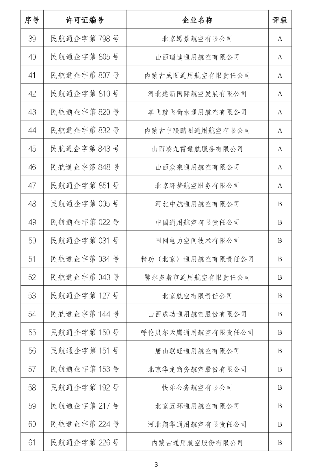 「低空经济观察」获悉,此次诚信经营评价结果将作为民航行政机关实施行业监管、增减检查频次、政策适用和通用航空发展专项资金补贴发放等工作的重要参考。各通用航空企业要结合自身评级,加强企业诚信自律经营,遵章守法,守信践诺,推动通用航空高质量发展。「低空经济观察」将评价结果分享如下。