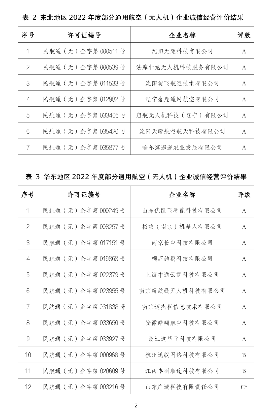 ■ 2022年度通用航空(无人机)企业诚信经营评价结果