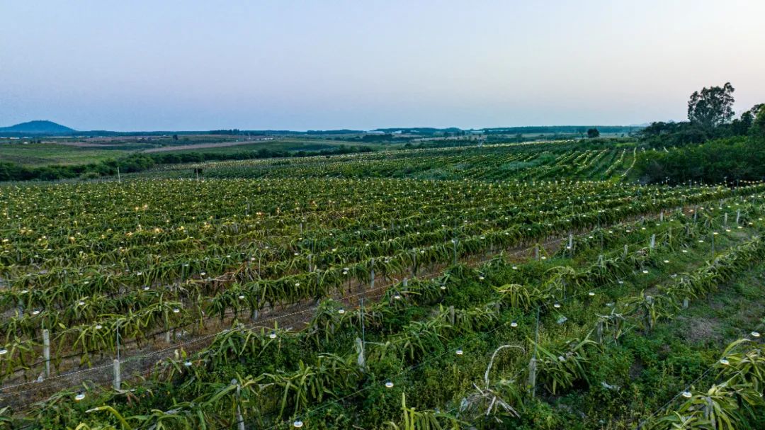 行走在海南昌江的乡间小路上,空气中到处都飘散着一股香甜。抬眼望去,田间里一排排整齐的枝架上,挂满了红彤彤的火龙果。这里的红心火龙果,肉厚汁多、清甜爽口,不但外皮靓丽,而且富含人体所需的花青素和丰富的微量元素,因此很受市场欢迎。而要想种出这样高品质的火龙果,除了光合作用,还离不开高科技的加持。