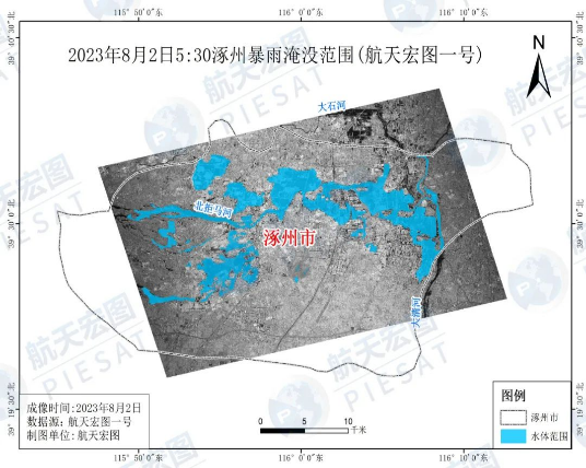 ▲“航天宏图一号”卫星应用京津冀防洪减灾