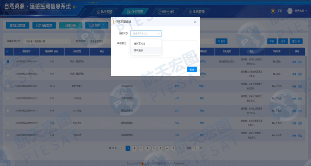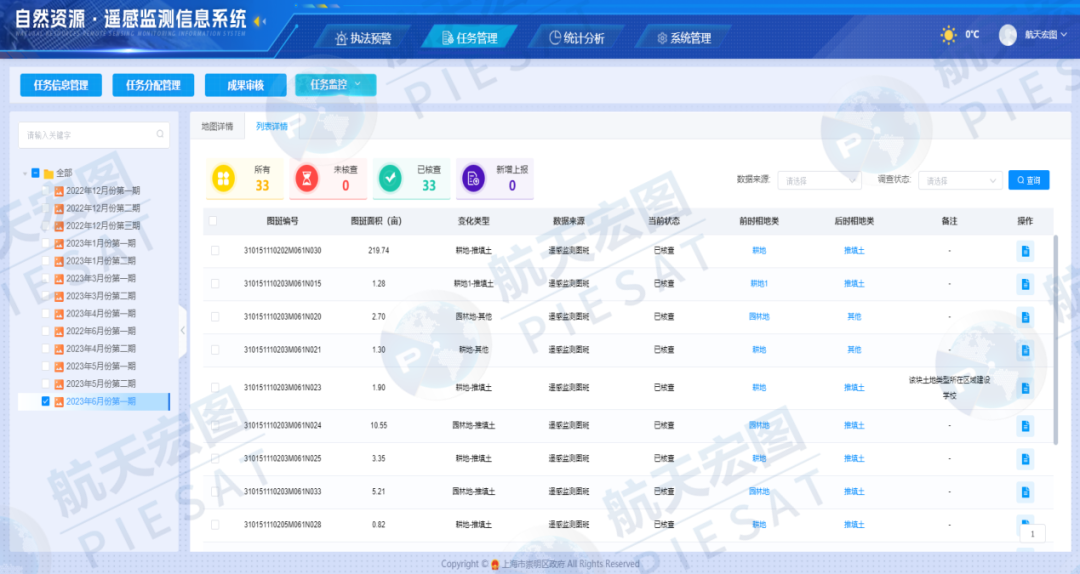 统一管理任务数据,按照数据状态“未分配-已分配-已核查-已审核-已入库”实现数据全流程管理,实现自然资源动态动态监管。
