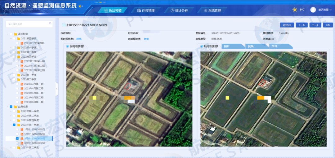 全面展示区域内疑似图斑分布情况,支持对比分析、详情查看等。