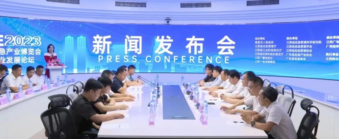 2023年9月21日上午10时18分,2023南昌国际应急产业博览会暨应急产业发展论坛新闻发布会在江西广播电视台融媒体中心19楼召开。江西广电传媒集团副总经理龙凤生,江西省应急管理厅二级巡视员、救援协调和预案管理局局长李显明,江西省住房和城乡建设厅、建设工程消防监管处处长谢红星,江西省工业和信息化厅装备工业处四级调研员范亚文,南昌市商贸和会展服务中心副主任涂平辉,江西广电会展集团有限责任公司总经理温俊等领导出席发布会,介绍本届展会相关情况并回答记者提问。