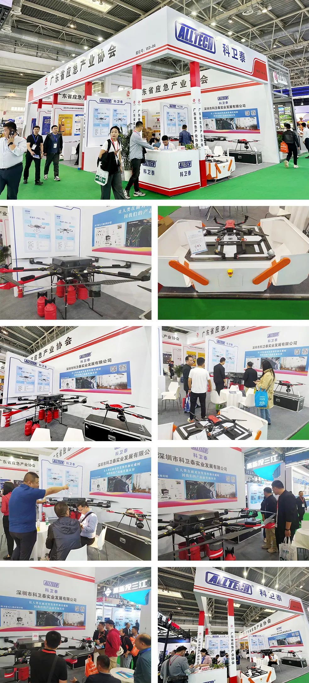 科卫泰此次展出的四旋翼无人机KWT-Z4S、KWT-Z4W、KWT-X4L;八旋翼无人机KWT-Z8L-50以及智能机场KWT-UH100。运用场景广泛,涵盖了险情侦测、技术巡查、路面监测、电力巡检、森林防火灭火、高山运投!现场通过产品展览、案例视频播放、现场讲解等方式向公众展示,充分展现了公司的产品特色和品牌形象,受到众多参观展台领导与来宾的关注。