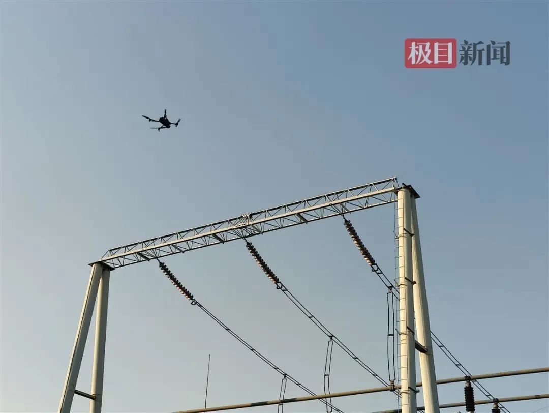 国网湖北电力员工对纪南变电站进行无人机巡检