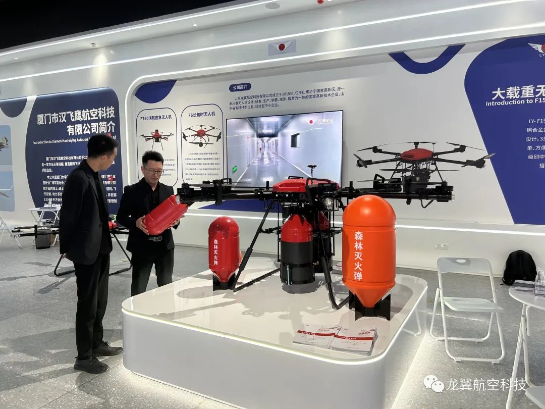 山东龙翼航空科技有限公司作为消防应急行业的成功企业,应邀参加此次展会,并携带森林消防应急神器——LY-F150、LY-FT60以及F-K系列森林灭火弹精彩亮相于展会现场,吸引众多参观者驻足观摩探讨,并获得一致好评。