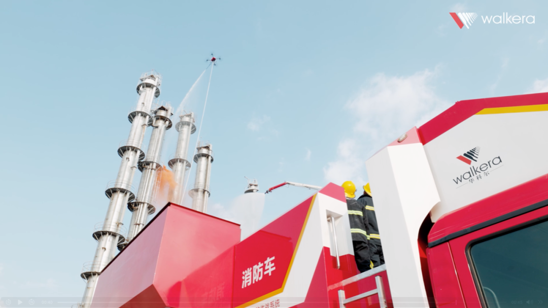 该无人机以及配套的消防车是华科尔机车联动高层灭火救援系统,无人机接入消防车的系留发电机组和空压泡沫系统,无需反复起降更换电池或装载灭火剂,无人机携带水带可直接喷洒,连续灭火时间可达72小时,极大提升灭火效率。