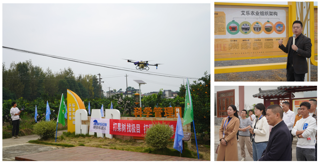 10月29日,大会主办方组织观众前往全程用极目无人机飞防管理的果园(眉山艾乐农业果园)进行参观,并现场进行极目无人机飞防演示+荧光试验检测+技术讲解。