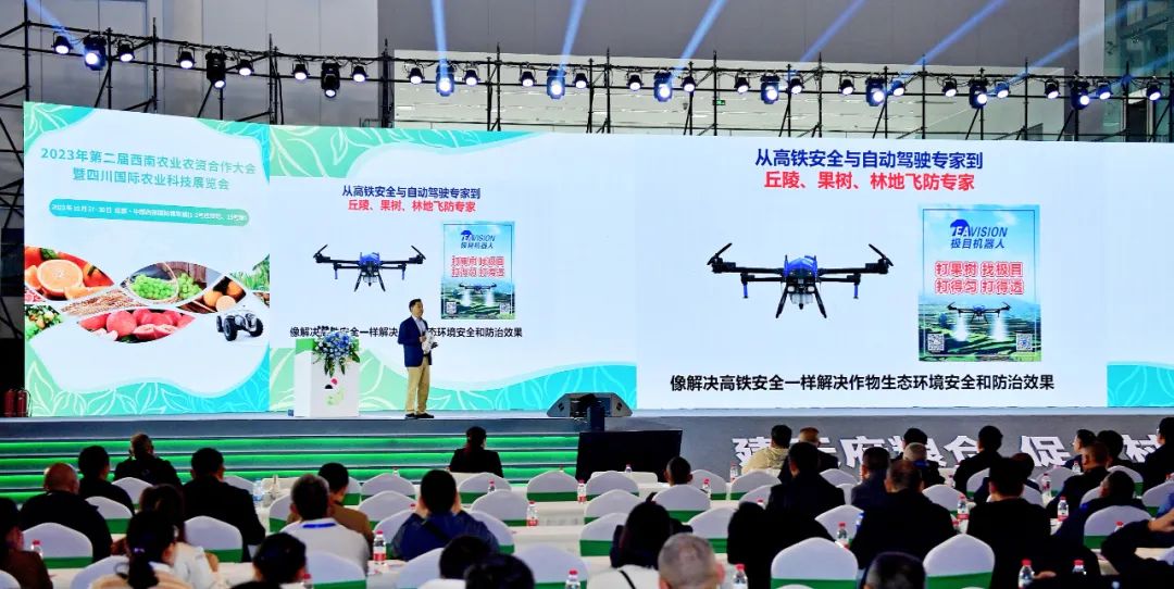 高强先生发表《极目助力农业服务商升级 赋能农业产业化》主题演讲,阐述极目无人机于植保领域成为飞防专家的关键技术在于首次将双目视觉技术+双峰弥雾喷洒技术CCMS应用于农业复杂环境,解决了山地丘陵无机可用的行业难题。