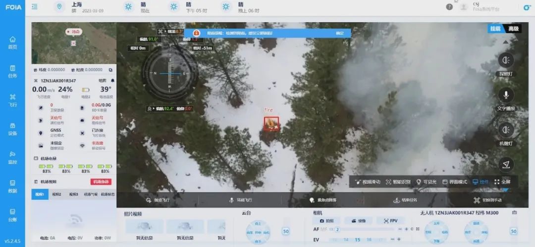在此基础上,复亚改变传统的算法先采后处理模式,以无人机全自动飞行系统架构,将智能识别算法的技术优势转化为行业的实际成果。实现飞行过程中实时识别,识别结果与飞行画面同步实时呈现,发现问题即时多通道异常提醒,针对问题可即时操作响应,以及异常信息结果汇总展示等。