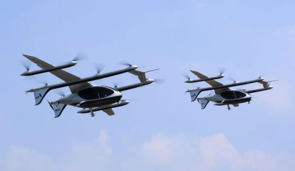 峰飞盛世龙eVTOL电动垂直起降航空器,5座设计,最快时速可超200公里,是中国率先成功完成转换飞行的2吨级eVTOL航空器,于今年2月创造单次充电飞行250公里的世界航程纪录。今年7月,峰飞完成三架盛世龙eVTOL航空器的编队飞行,实现了全球首次吨级以上eVTOL多架机、多机组、同空域、全转换的编队飞行。