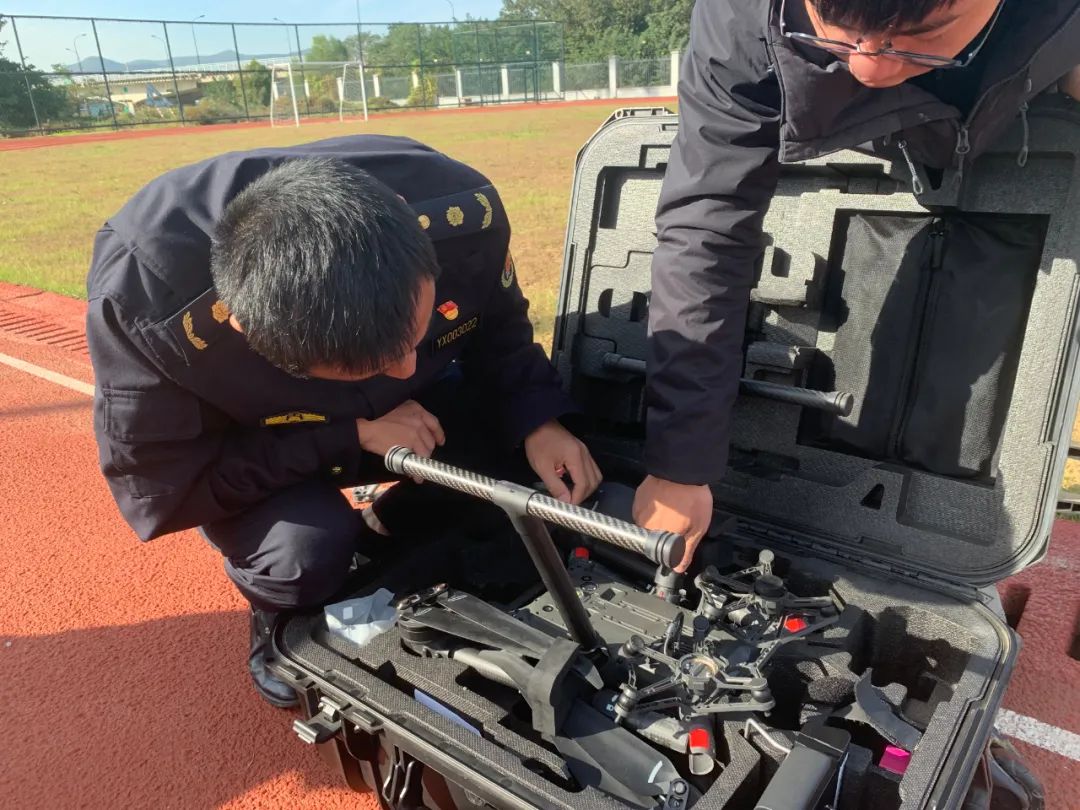 随后,参训城管队员分组进行飞行训练,逐一对无人机设备安装、调试、起飞、悬停、轨迹飞行、避障飞行、定点降落等操作有序地进行实操演练并由培训教员进行考核,城管队员就实操中遇到的问题与培训教员现场进行答疑交流,逐步掌握无人机操作要领以及对复杂环境的应对措施等实战应用技巧,从而满足不同现场环境执法需求。