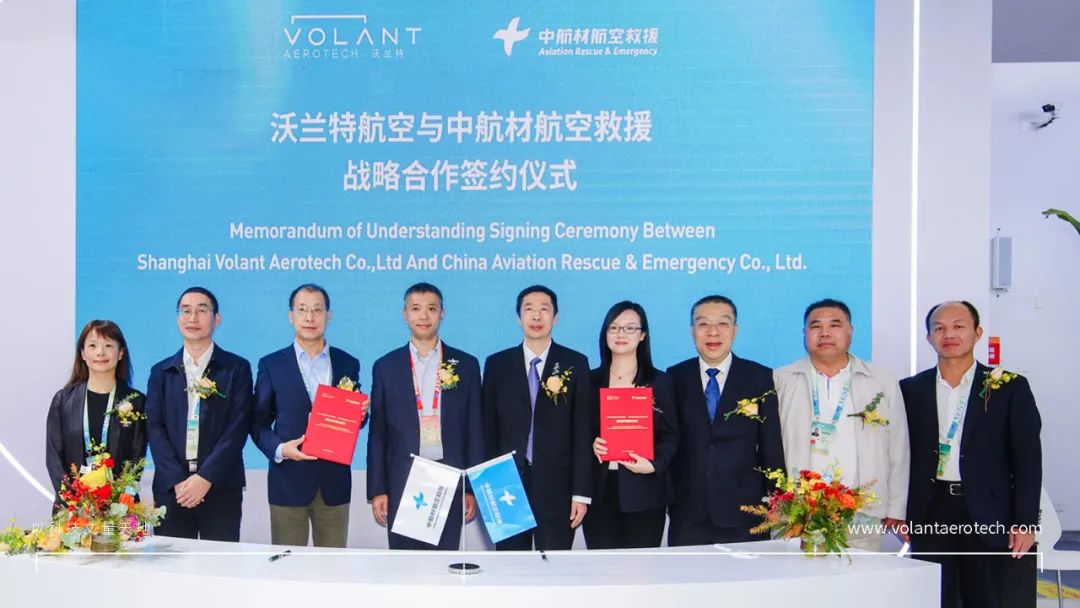 在中航材集团原总经理杨晓明、中航材航空救援总经理许扬、沃兰特航空创始人/CEO董明的见证下,中航材航空救援与沃兰特航空签订战略合作协议。中航材航空救援股份有限公司是中国航空器材集团为履行央企责任,推动实现“两翼齐飞”的民航强国发展战略而专门投资设立的国内首家专业从事航空救援的平台型综合服务公司,是开展航空救援体系平台建设的“国家队”。