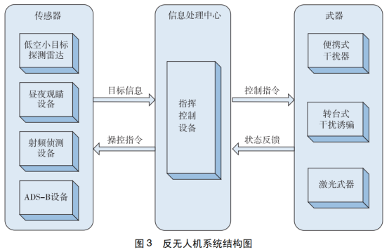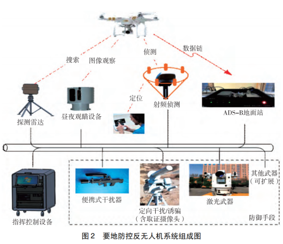 综合各设备优缺点,本文提出要地防控反无人机系统方案,系统组成图和系统结构图分别如图2和图3所示