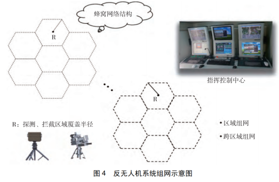 此外,该系统可实现组网运行,核心思想是采用蜂窝网络结构实现重点区域探测和拦截全覆盖,图4为部署示意图。