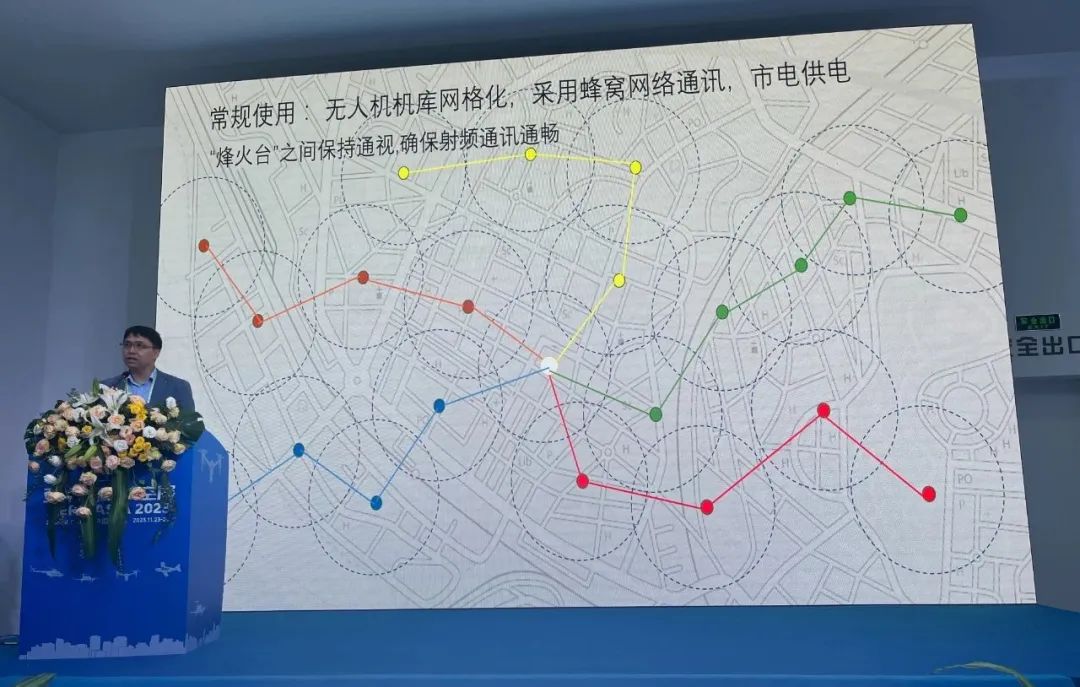 常规使用时,采用无人机机库网格化模式、蜂窝网络通讯和市电供电的运行方式,“烽火台”之间保持通视,确保射频通讯通畅,任何一个地方发生问题,都可以通过“通视”传导到中央。