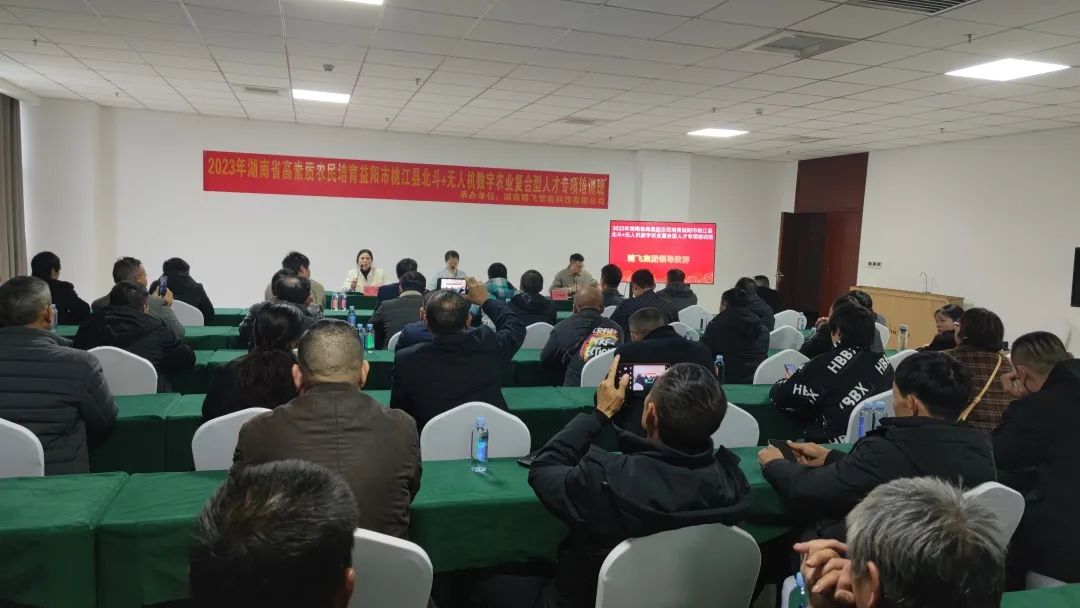 12月2日,由益阳市桃江县农业农村局主办、湖南精飞智能科技有限公司承办的2023年湖南省高素质农民培育·桃江县北斗+无人机数字农业复合型人才专项培训班开班,来自桃江县各乡镇的种养大户、家庭农场主、农民专业合作社带头人、农机社会化服务企业负责人等70名高素质农民参加了此次培训。
