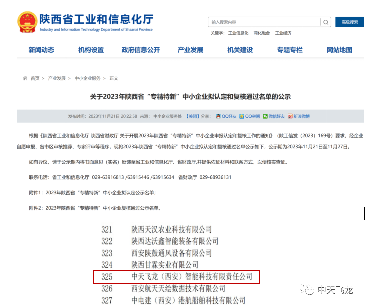 近日,中天飞龙顺利通过2023年陕西省“专精特新”中小企业认定,这一殊荣标志着公司在专业化、精细化、特色化、新颖化发展道路上取得了阶段性成果,是公司发展的重要里程碑。