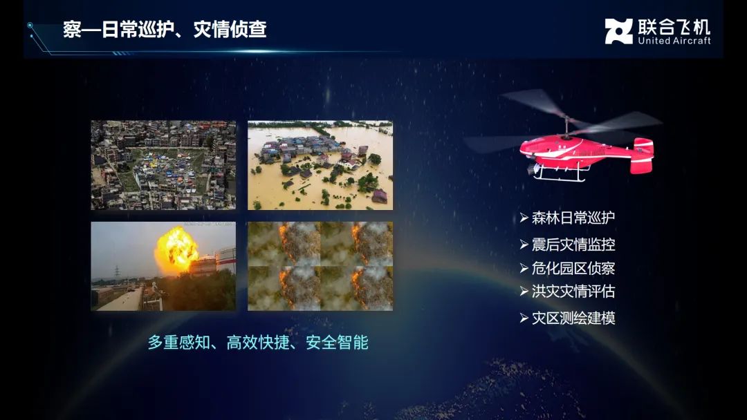 风雨强劲旅,水火度沧桑。目前,联合飞机智慧应急解决方案在城市、森林、水上、山区、高原、沙漠等不同环境下,各类应急救援和安全生产场景中持续积累实战经验,覆盖防灾减灾救灾、安全生产、消防安全等主要领域和各类场景;在各类任务应用中锤炼能力,保护人民,守护国家。