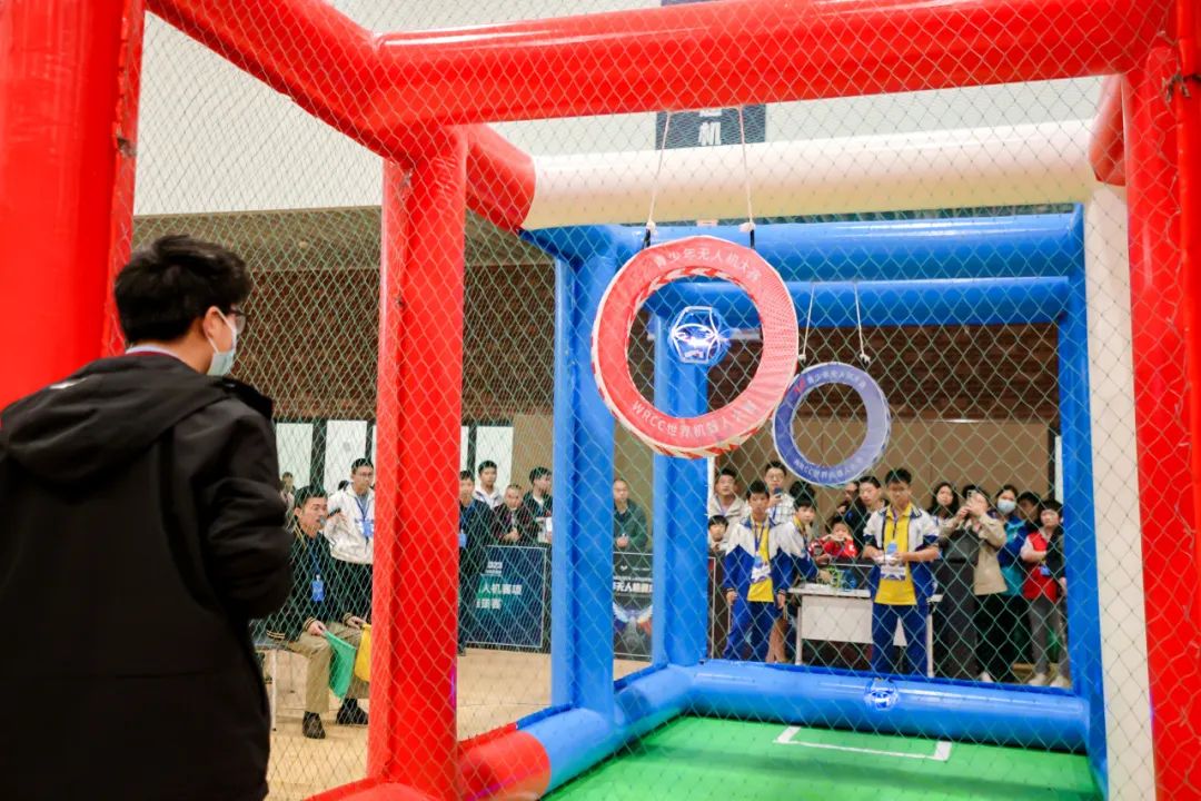 在球形无人机对抗赛的赛场上,选手们手握遥控器,游刃有余地操控着无人机穿越到对方区域,或进攻或防守,双方你来我往间充满着激烈竞争,精彩表现赢得了赛场观众满堂喝彩。
