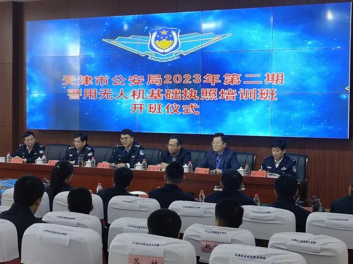 11月10日,警用无人机基础执照培训班正式开班,天津市公安局党委委员、副局长于建政,天津公安局警务航空总队张玉峰总队长,万忠智副总队长,天津机电职业技术学院党委副书记、校长王维园,一飞智控总经理张云等出席。