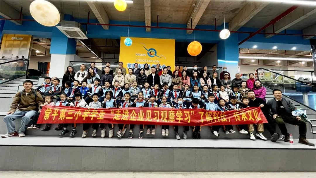 12月16日,在异能无人机科普教育基地,由常平镇第三小学组织开展的“航空航天科普”亲子活动。这次活动的主题是“走进企业,了解科技、传承文化”,旨在激发孩子们对航空航天的兴趣和热爱,同时也为参与家庭提供了一个亲子互动的机会。
