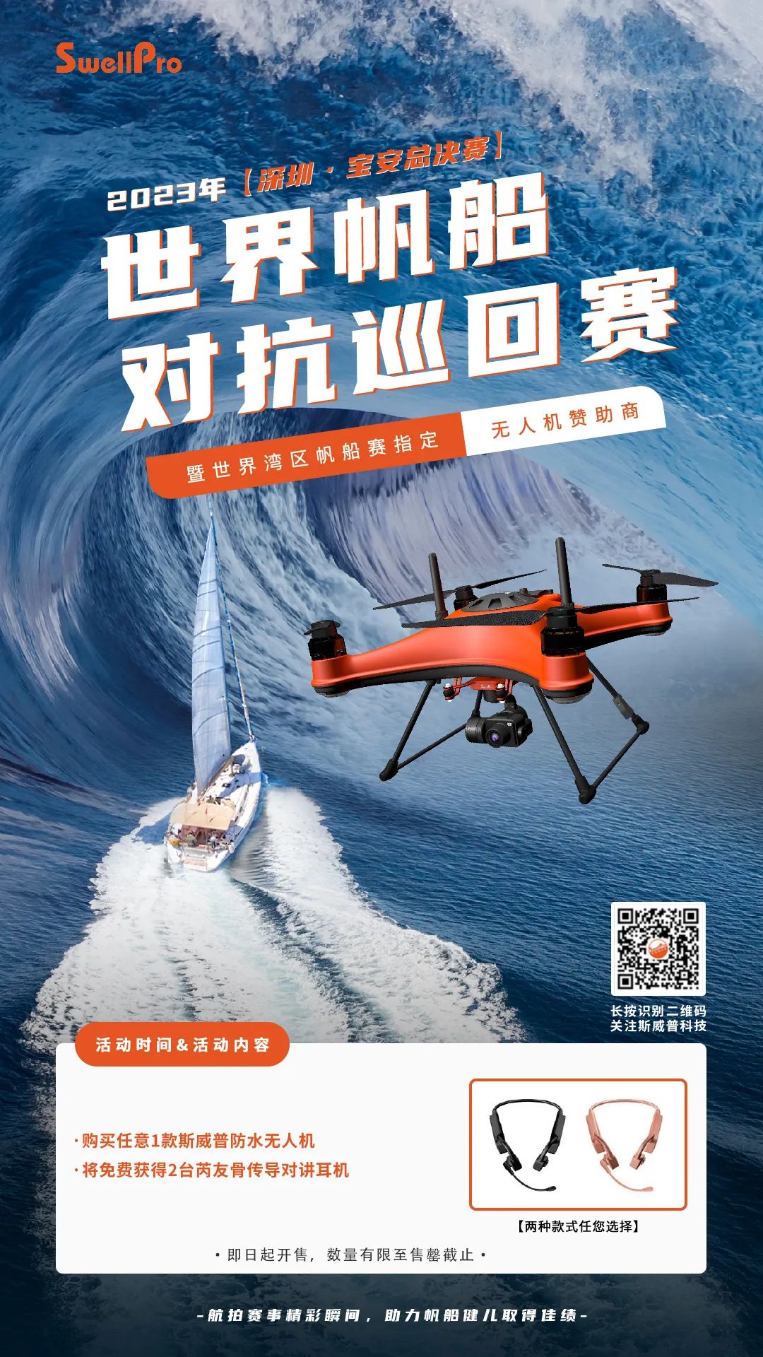 作为高端防水无人机品牌,一直以来都以产品质量和技术创新为核心竞争力,为各行各业的用户提供优质的产品和服务。此外,现在购买斯威普任意一款防水无人机,您将免费获得“2023世界帆船对抗巡回赛(WMRT)深圳•宝安总决赛暨世界湾区帆船赛”指定专业智能穿戴通信服务供应商提供的芮友骨传导对讲耳机2台。