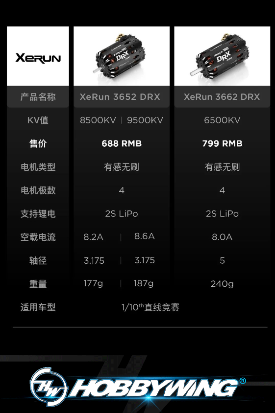 1.XERUN(速龙)系列竞赛型车模无刷动力系统;