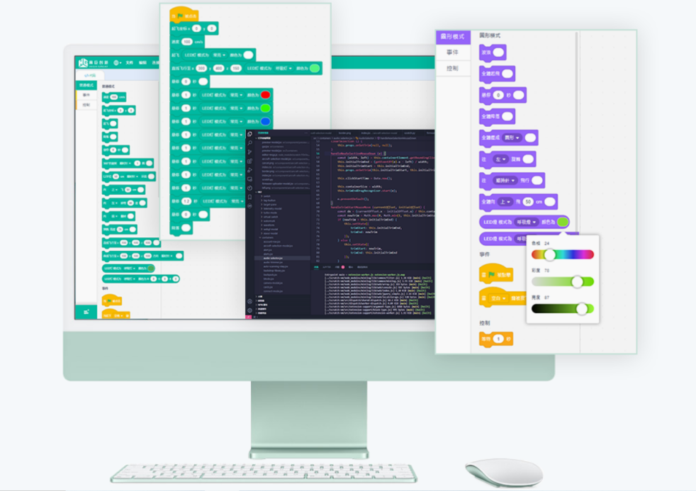 可视化的Scratch语言,适合初次接触编程的用户,通过模块化控制飞行器,设定飞行器的起降、速度及翻滚等多项飞行参数及轨迹,甚至能够亲自设计翻转等“特技”动作,在寓教于乐中理解编程的逻辑。