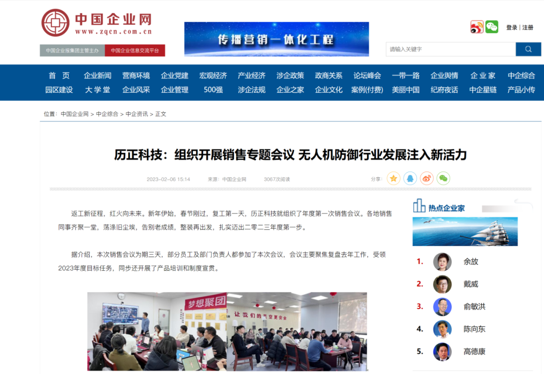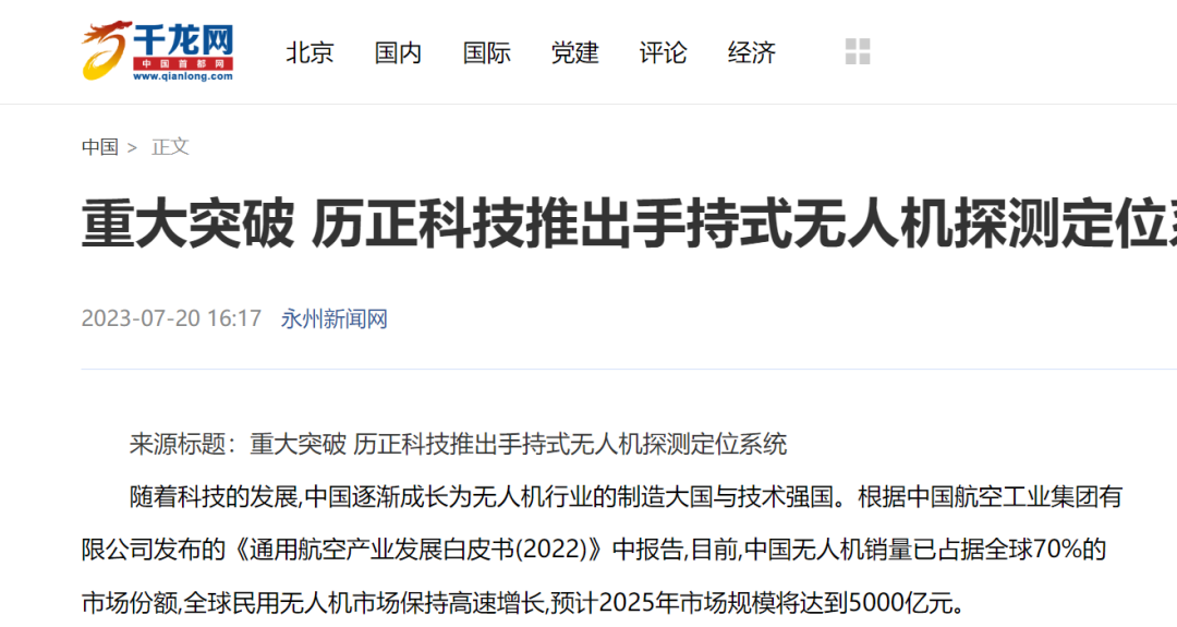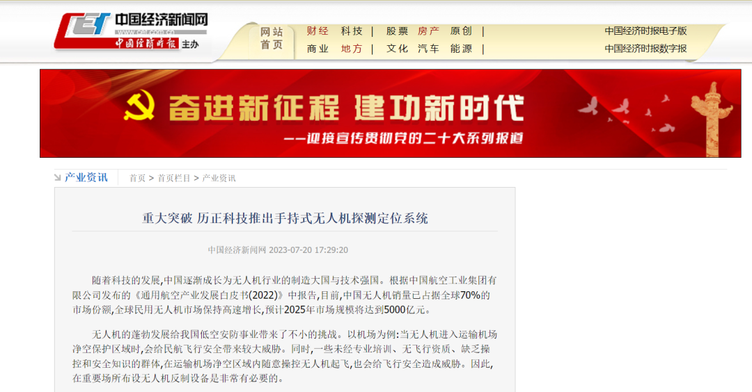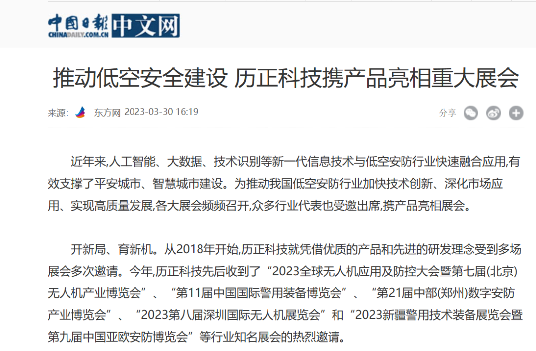 凭借优异的产品技术性能,历正科技逐步形成覆盖无人机反制产品研发、低空周界防护、空情数据挖掘、信息服务推广的全产业链发展格局,编织出一张张的低空安全“防护网”。