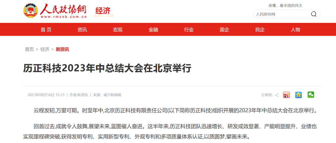 在京举办 历正科技受邀出席