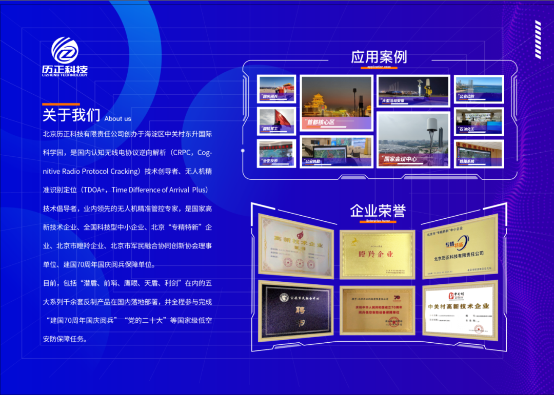 近年,历正科技研制生产的千余套无人机反制产品在国内部署应用,配套国家体育场“鸟巢”等多个知名地标工程。