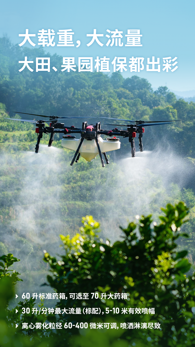 农业无人飞机的效率是由多个因素共同决定的,其中载重至关重要。飞机载重越大,意味着单架次装载量越多,作业面积更广。但同时,更大的载重,需要飞机拥有更充足的动力冗余和更强的电池续航能力,这也是提升实际作业效率的关键所在。